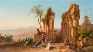 Cavalieri In Sosta In Un Paesaggio Di Rovine