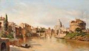 Riders at halt by a river in an Italianate landscape
