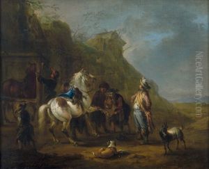 Bring the timeless beauty of Pieter van Bloemen's Travelers At Blacksmith's into your home with a handmade oil painting reproduction. Carefully recreated on canvas by skilled artists using traditional techniques, this piece captures the delicate brushwork, subtle light, and vibrant color of the original masterpiece. With museum-level quality and rich texture, it brings elegance and artistic depth to any space. Enjoy free shipping and make this masterpiece a part of your personal collection.