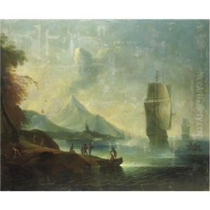View Of Pozzuoli, With Fishermen Bringing In Their Catch In Theforeground, Vesuvius Beyond