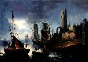 A Harbour Scene With Figures Disembarking Their Boats