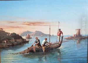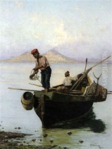 Fisherman In The Bay Of Naples With Capri In The Rear Ground