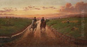 Cavaliers Sur Le Chemin Au Crepuscule