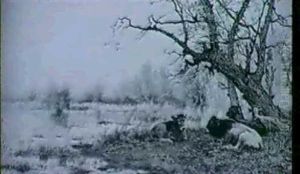 Long Horned Cow With Calf By A River