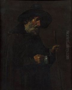 Portrait Of An Old Lady Cooking Chestnuts In Abrazier