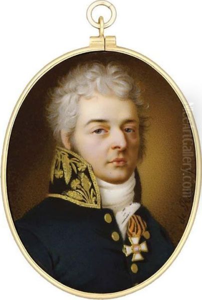 A Fine Enamel Miniature Of A Nobleman Called Prince N. S.volkonsky, With Powdered Curly Hair And Sideburns, In Dark Blueuniform With Gold Embroidered High Collar, White Stock, Wearing Thebadge Of The Imperial Russian Order Of St. George The Martyr Andvanq