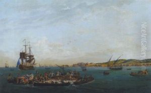 The Bay Of Naples From The Strada Di Posillipo Looking East, With Fishermen Selling Their Catch In The Foreground