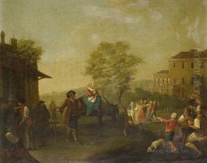 Peasants Dancing And Playing Music Along A Country Road; Peasants Gathered Under A Stone Arch