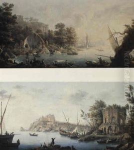 A Landcape With Figures Among Ruins And A Harbour Beyond