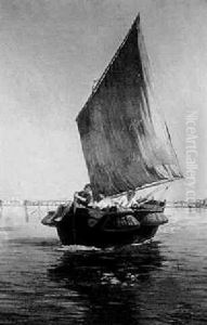 A Fishing Boat In The Bay Of Naples, Vesuvius Beyond