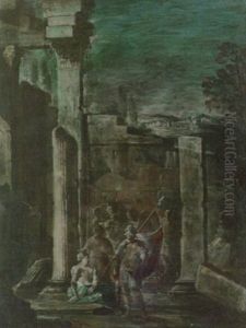 A Capriccio Landscape With Figures By Ruins In The Foreground