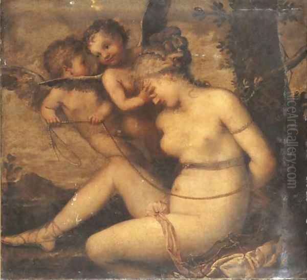 Venus being bound by two putti
