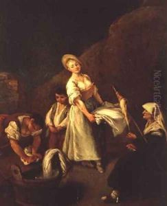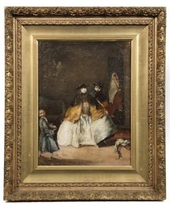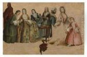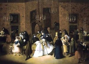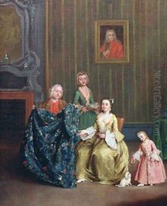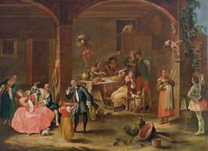 Violinist And A Cellist Playing For Two Ladies (+ Lady Having Her Hair Coiffured, Seated Beside A Child And A Man, Two Maids Beyond; Pair)