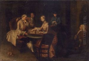 A Gentleman And A Lady Playing Tric-trac In An Interior