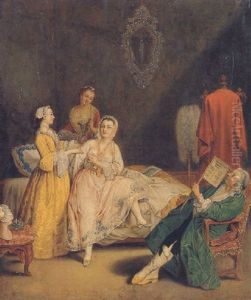 An Elegant Lady At Her Morning Toilet With Attendants And Maids In An Interior