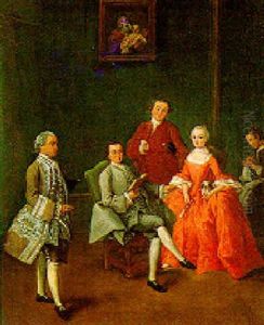 La Lettura: Tre Cavalieri In Abito Galante, Una Dama Con Cagnolino E Una Domestica In Un Interno Veneziano
