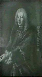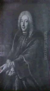 A Portrait Of A Gentleman, Bust Length Wearing A Red Jacket Trimmed With Gold Brocade And A Black Bow
