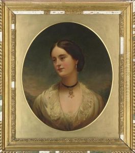 A Young Lady With Pearl Choker And Gold Stickpin At Her Corsage