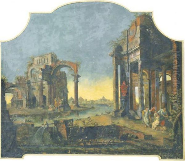 An Architectural Capriccio With Figures Among Ruins