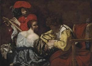 Figures In An Interior Around A Lantern