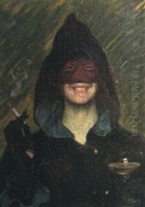 Portrait Of A Young Man, Half Length, Wearing A Wide-brimmed Red Hat And Holding A Mask