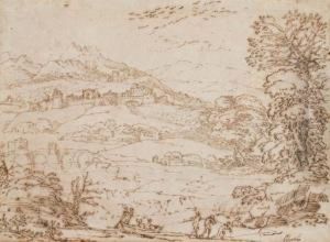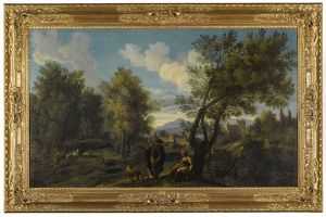 A Classical Landscape With A Shepherd And Fisherman, A Town Beyond