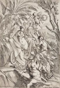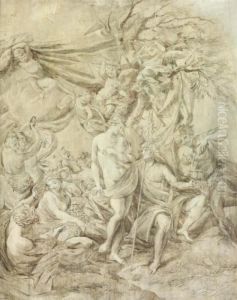Mythologische Szene Mit Eros, Nymphe Und Satyr.