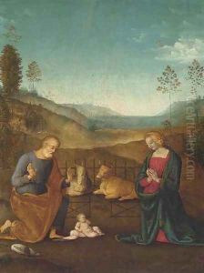 La Vierge A L'enfant Entouree De Saint Jean-baptiste, Saint Jean L'evangeliste Et Saint Bruno