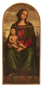 The Madonna And Child Seated Before A Sculpted Parapet, An Apple Resting Beside Her