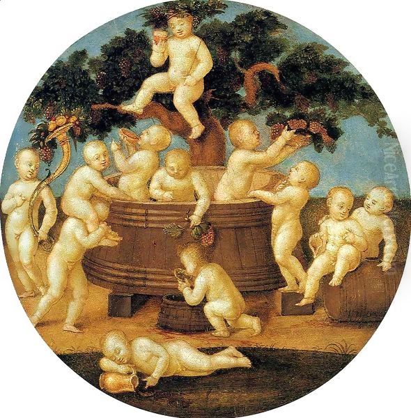 Bring the timeless beauty of Pietro Vannucci Perugino's Putti with a Wine Press into your home with a handmade oil painting reproduction. Carefully recreated on canvas by skilled artists using traditional techniques, this piece captures the delicate brushwork, subtle light, and vibrant color of the original masterpiece. With museum-level quality and rich texture, it brings elegance and artistic depth to any space. Enjoy free shipping and make this masterpiece a part of your personal collection.