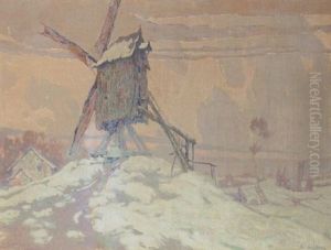 A Windmill In A Snowy Landscape