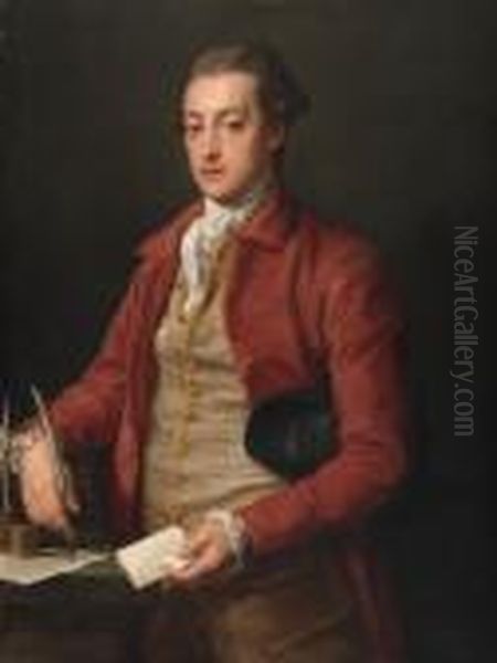 Portrait Of The Hon. Lionel Damer, Half-length, In A Red Coat, Witha Grey Vest And A White Cravat, Holding A Letter And A Quillpen