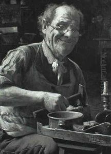 Depicting A Man Operating A Knife Sharpener
