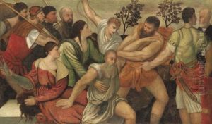 Pomponio Amalteo was an Italian painter of the Renaissance period, born in 1505 in Motta di Livenza, near Treviso, in the Veneto region of Italy. He was a prominent figure of the Venetian school and is particularly known for his work following the style of the High Renaissance and Mannerism. Amalteo was a student and son-in-law of the more famous Italian painter Il Pordenone, Giovanni Antonio de Sacchis, who had a significant influence on his style and techniques.