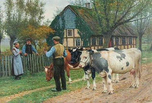 Bring the timeless beauty of Poul Steffensen's Farmers Get To Chat In A Village into your home with a handmade oil painting reproduction. Carefully recreated on canvas by skilled artists using traditional techniques, this piece captures the delicate brushwork, subtle light, and vibrant color of the original masterpiece. With museum-level quality and rich texture, it brings elegance and artistic depth to any space. Enjoy free shipping and make this masterpiece a part of your personal collection.