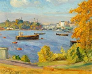 Strand Med Almar - Utsikt Fran Waldemarsudde Mot Saltsjokvarn