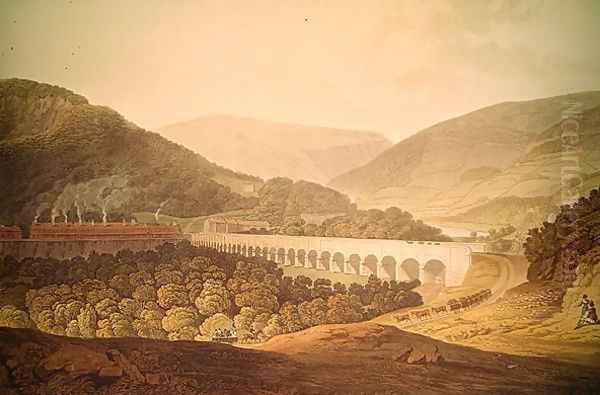 View of a Stone Bridge across the Valley and River at Risca in Monmouthshire