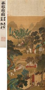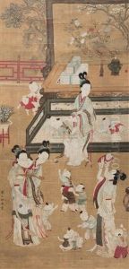 Palindrome And Ladies In Garden Court (+ Calligraphy By Guan Dausheng (attributed), Verso)