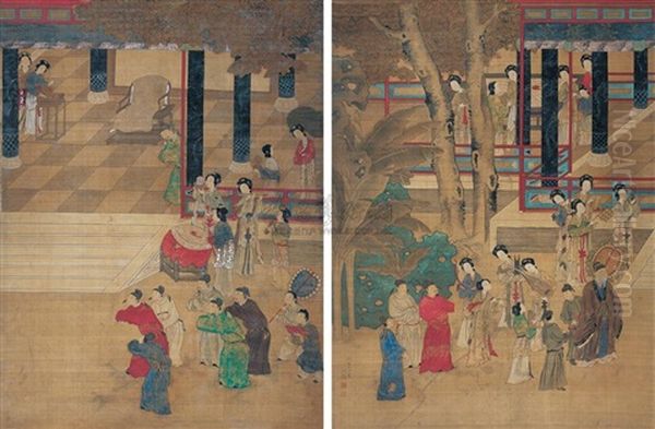Landscape And Character Oil Painting by Qiu Ying