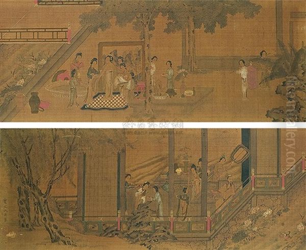 Landscape And Character Oil Painting by Qiu Ying