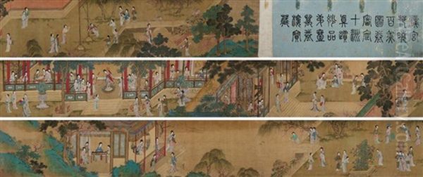 Landscape And Character Oil Painting by Qiu Ying