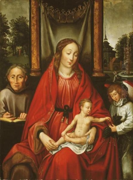 Vierge A L'enfant Avec Saint Francois Et Un Ange