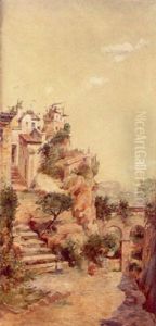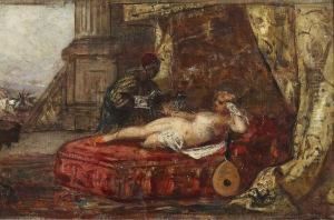 Moors In A Courtyard; Odalisque In A Moorish Courtyard (a Pair)