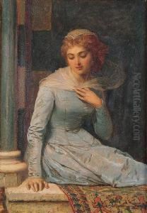 A Draped Table With Peaches And Books On A Cushion; And A Draped Table With A Clock, A Pair Of Paintings