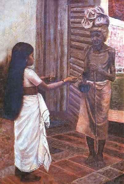 Bring the timeless beauty of Raja Ravi Varma's Alms into your home with a handmade oil painting reproduction. Carefully recreated on canvas by skilled artists using traditional techniques, this piece captures the delicate brushwork, subtle light, and vibrant color of the original masterpiece. With museum-level quality and rich texture, it brings elegance and artistic depth to any space. Enjoy free shipping and make this masterpiece a part of your personal collection.