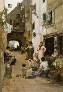 In addition to his Venetian scenes, Curtis traveled extensively, painting landscapes and cityscapes across Europe. His style was influenced by Impressionism, although he never fully adopted the movement's techniques. Instead, Curtis developed a personal approach that focused on the atmospheric effects and the play of light, using a palette that was often vibrant yet harmonious.