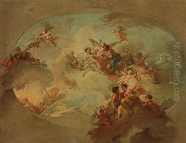 Apollon, Zephir Et Chloris, Mars Et Venus Et Les Signes Du Zodiaque (preparatory Study For A Ceiling)
