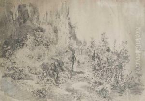 Figure By A Stream In A Mountain Landscape