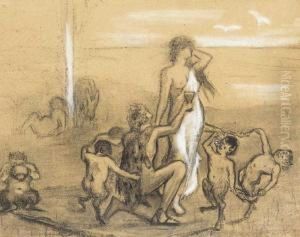 Design For A Frieze With Winged Putti Tormenting A Satyr