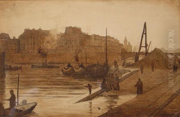 Scene De Chantier Sur Les Quais De Seine, A Paris